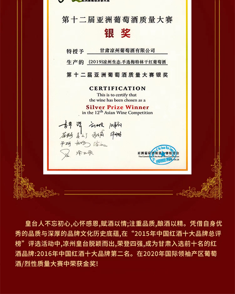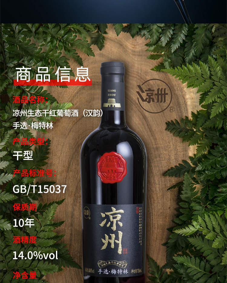 酒品名稱:涼州生態(tài)干紅葡萄酒 (漢韻)手選·梅特林