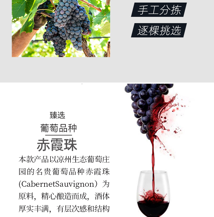 酒品名稱:涼州生態(tài)臻選·赤霞珠干紅葡萄酒