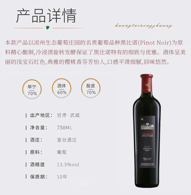 品名:涼州生態(tài)干紅葡萄酒2018黑比諾