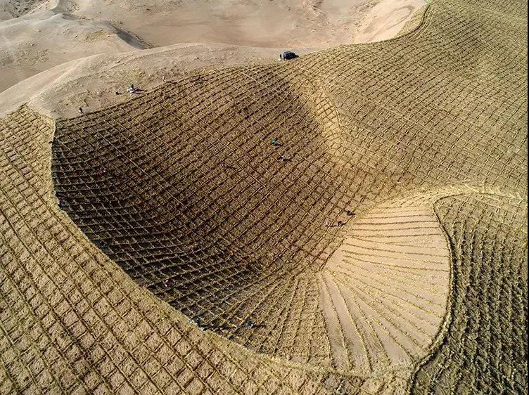 經(jīng)過(guò)了一整天的辛苦勞作,可謂戰(zhàn)果滿滿, 整齊劃一的“草方格”, 從大家的腳底下延伸至遠(yuǎn)方,像一道道迷人的風(fēng)景。無(wú)數(shù)的“草方格”,形成了成片沙障,將在這廣袤的沙海中,與風(fēng)沙牢牢抗衡。