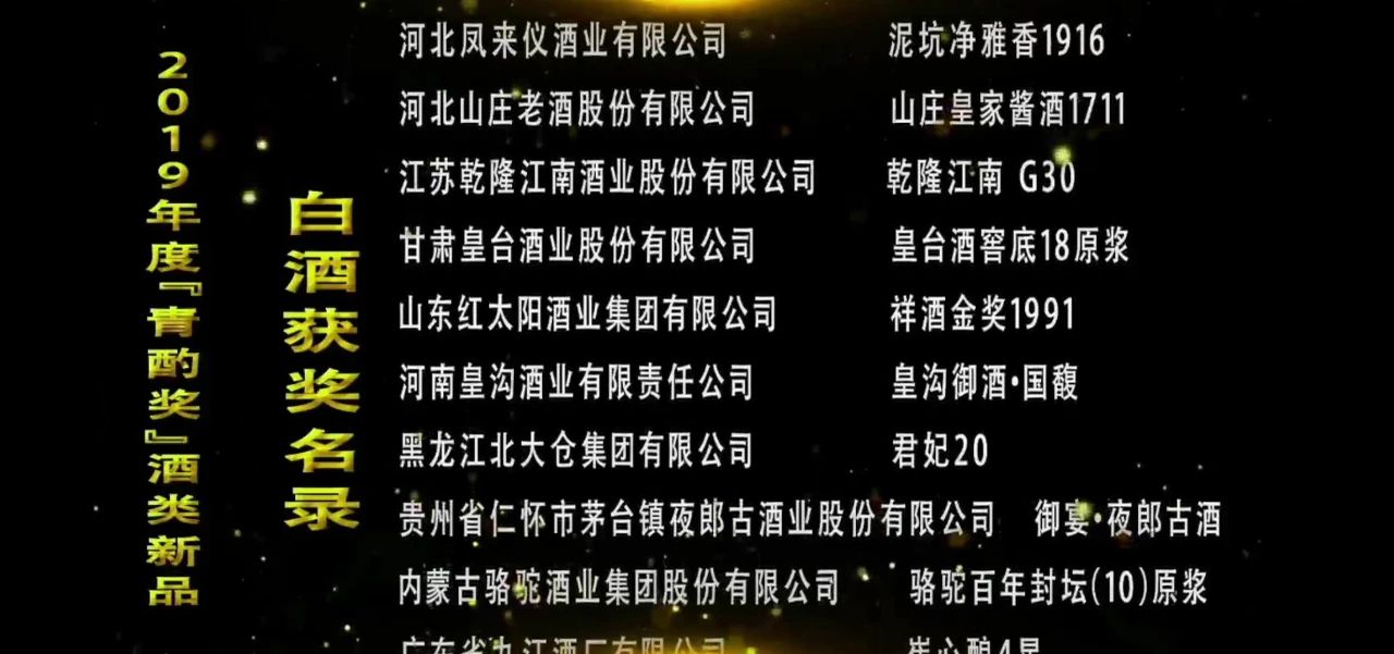 同日,中國酒業(yè)協(xié)會(huì)在酒博會(huì)上發(fā)布了2019年度「青酌獎(jiǎng)」酒類新品榜單,這是中國酒行業(yè)酒類新品的最高獎(jiǎng)項(xiàng),皇臺(tái)窖底原漿18在全國眾多品牌中脫穎而出,榮獲「青酌獎(jiǎng)」酒類新品獎(jiǎng)。