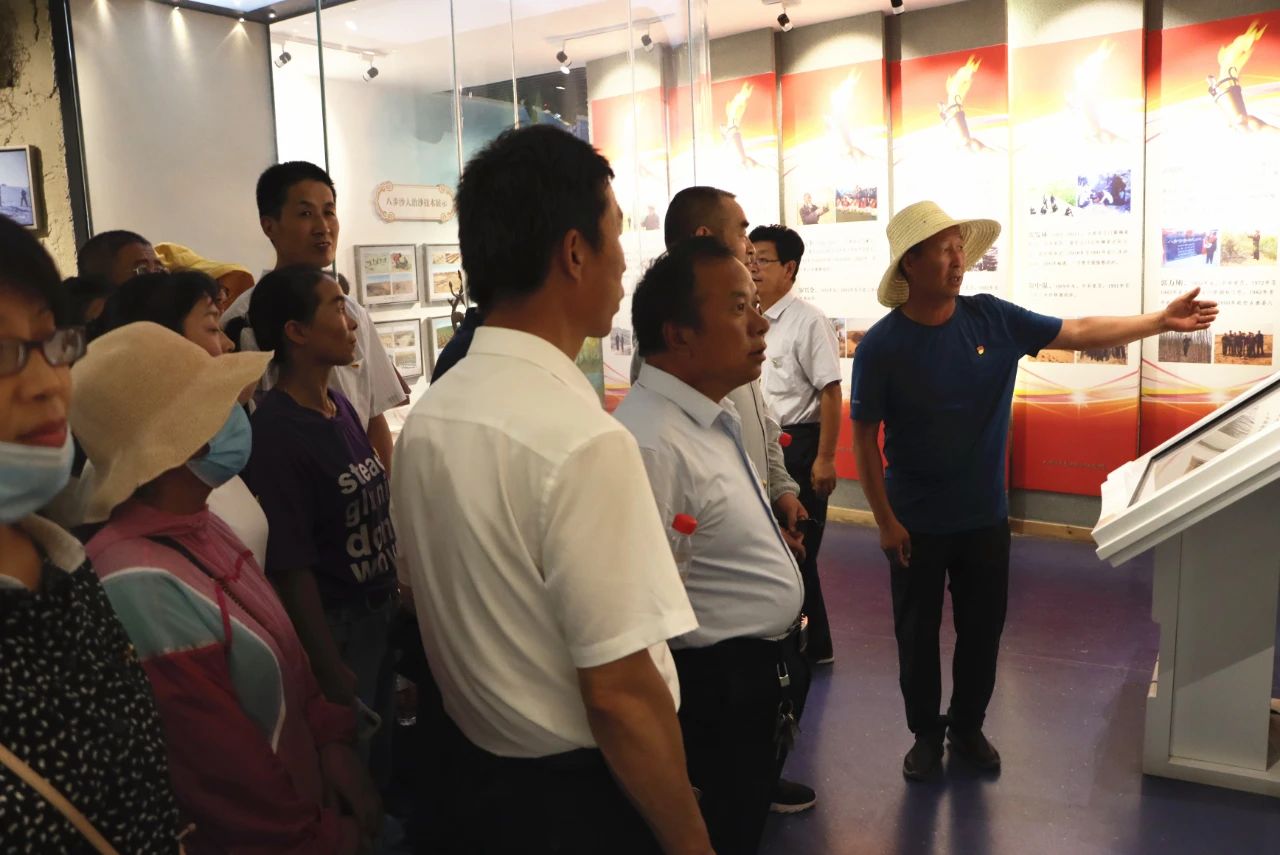 在紀(jì)念館講解員的講解下,大家神情肅穆,認(rèn)真聆聽。一張張圖片,一幅幅生動(dòng)的畫面,向大家形象展示了八步沙六老漢心系沙海、以苦為樂,自強(qiáng)不息、改造河山、戰(zhàn)天斗地的創(chuàng)業(yè)精神,黨員們無不被深深震撼。