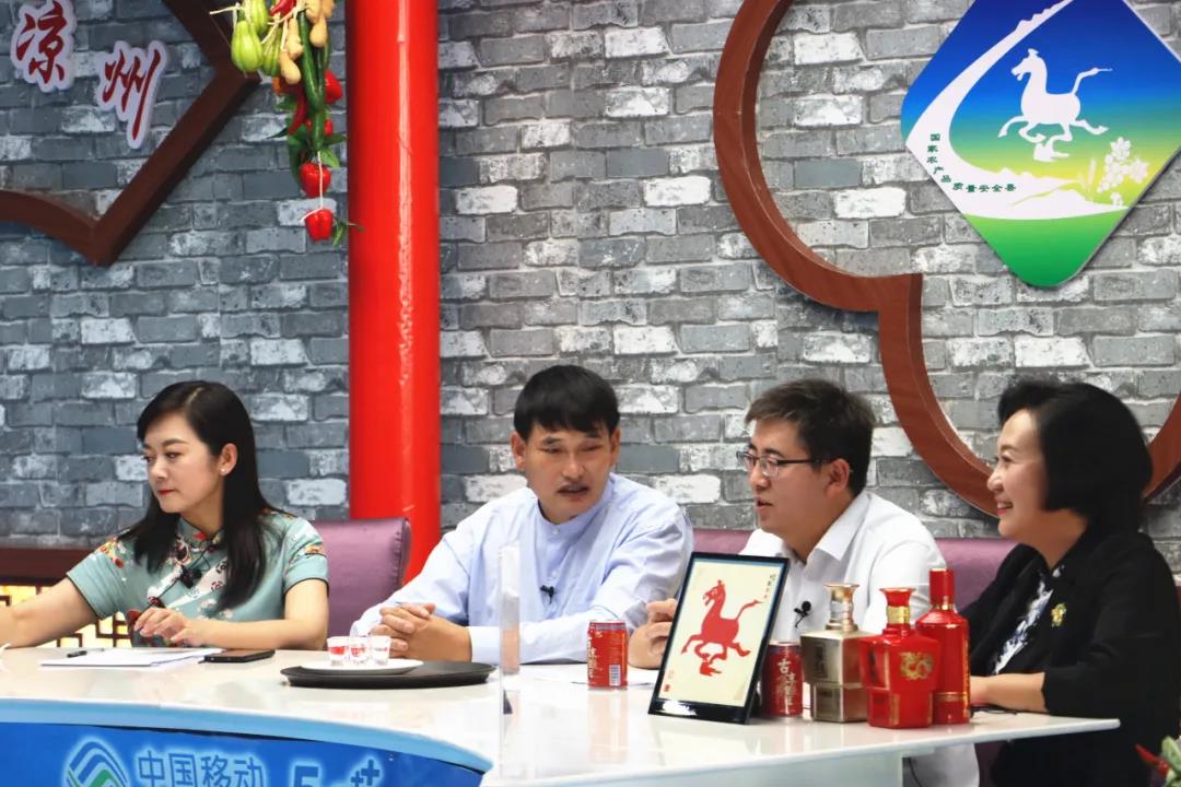 在直播間帶貨現(xiàn)場,涼州區(qū)區(qū)委副書記楊璐,區(qū)常常委、區(qū)委宣傳部部長李曉瑛以及主持人,攜手“大衣哥”朱之文為皇臺酒直播帶貨。在帶貨現(xiàn)場,朱之文仔細(xì)品味了皇臺酒后,連聲說好!并深情地唱起了酒歌。