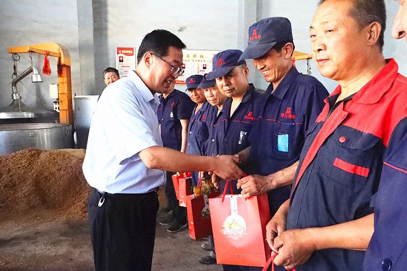 區(qū)總工會領(lǐng)導(dǎo)對釀造車間、包裝車間的職工進(jìn)行了現(xiàn)場走訪和親切慰問,并為大家發(fā)放了茶葉、水杯等清涼慰問品,在炎炎夏日,給廣大職工帶來了無限的清涼。