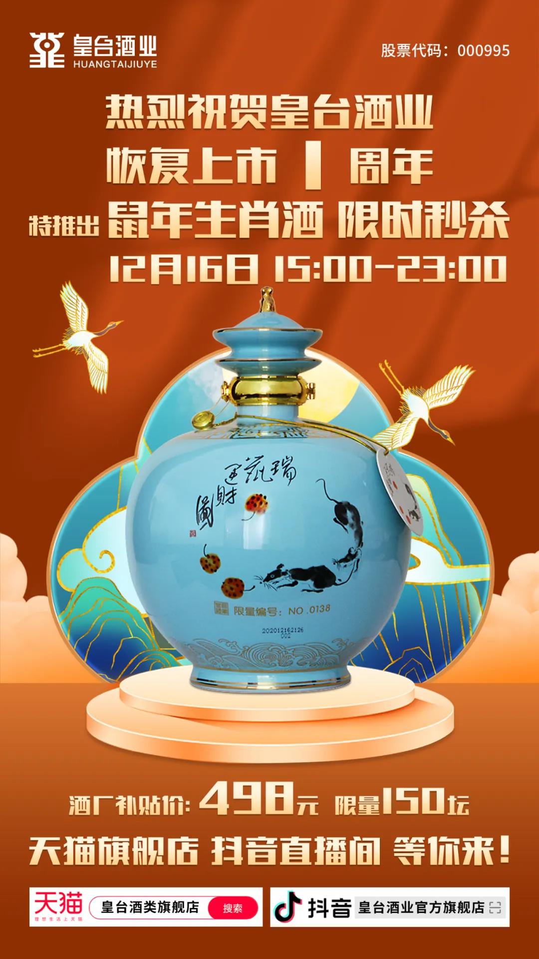 是皇臺酒業(yè)恢復上市1周年的日子!