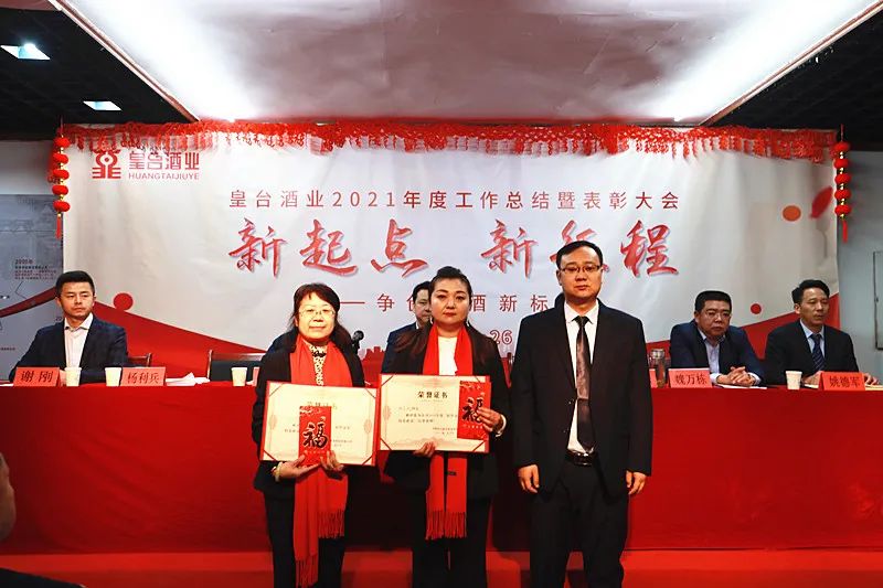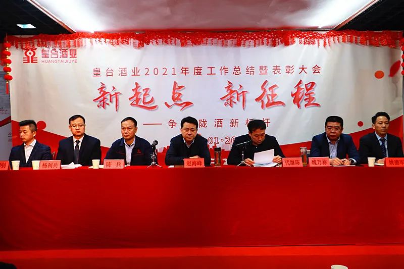 2022年1月26日下午,甘肅皇臺酒業(yè)股份有限公司在職工俱樂部召開2021年年度工作總結(jié)暨表彰大會?;逝_酒業(yè)董事長趙海峰,董事、總經(jīng)理代繼陳,副總經(jīng)理、生產(chǎn)總工程師陳兵,副總經(jīng)理楊利兵,財務(wù)總監(jiān)魏萬棟,營銷副總監(jiān)姚德軍,董事會秘書謝剛出席了此次大會。