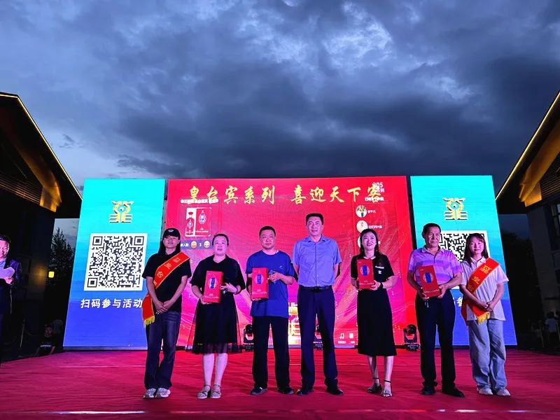 每場路演活動(dòng),觀眾只要將活動(dòng)場景拍照轉(zhuǎn)發(fā)朋友圈積贊,積贊最多者,即可在本場路演活動(dòng)結(jié)束時(shí),免費(fèi)獲得由皇臺(tái)酒業(yè)頒發(fā)的最佳人氣獎(jiǎng)——皇臺(tái)國賓酒2盒。