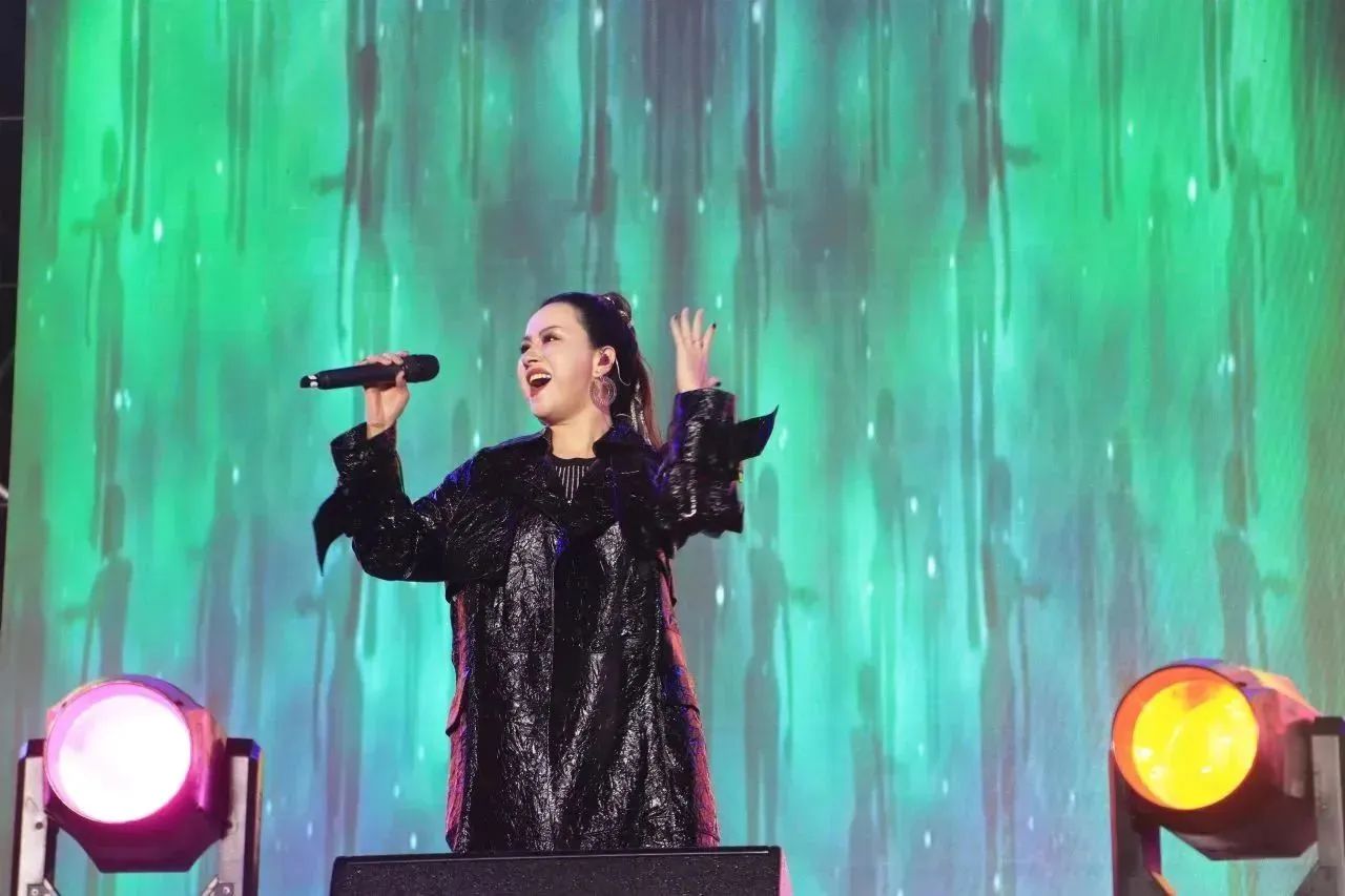 現(xiàn)場氛圍隨著音樂的節(jié)奏越來越熱烈,觀眾們揮舞著手中的熒光棒,大聲跟唱著經(jīng)典歌曲。