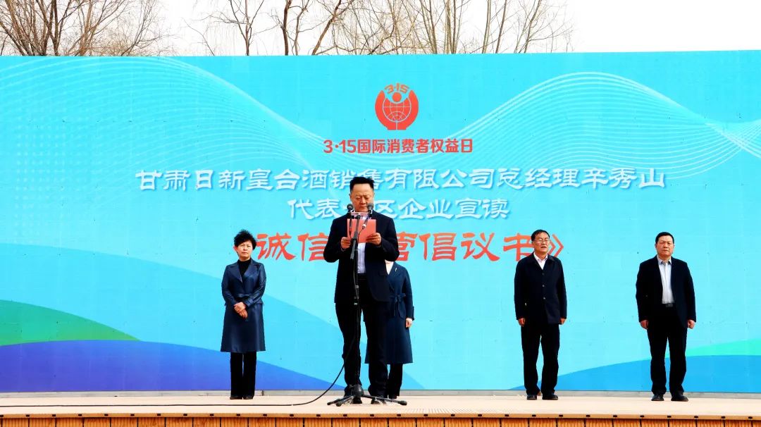 在此活動中,甘肅日新皇臺酒銷售有限公司總經(jīng)理辛秀山代表全市企業(yè)宣讀了《誠信經(jīng)營倡議書》。