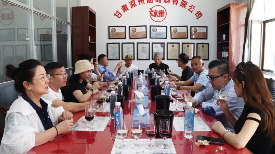 在葡萄酒車間的參觀中,雙方就葡萄酒的生產(chǎn)工藝、品質(zhì)控制以及市場趨勢等話題進行了深入的探討和交流,并品嘗了皇臺釀造的涼州葡萄酒,酒香四溢,令人陶醉,甘甜優(yōu)雅的口感讓人回味無窮。