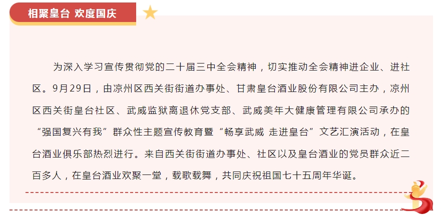 下一篇: 攜手同行 聚勢(shì)共贏|熱烈祝賀皇臺(tái)酒業(yè)2024年武威市場(chǎng)秋季訂貨客戶答謝會(huì)圓滿成功