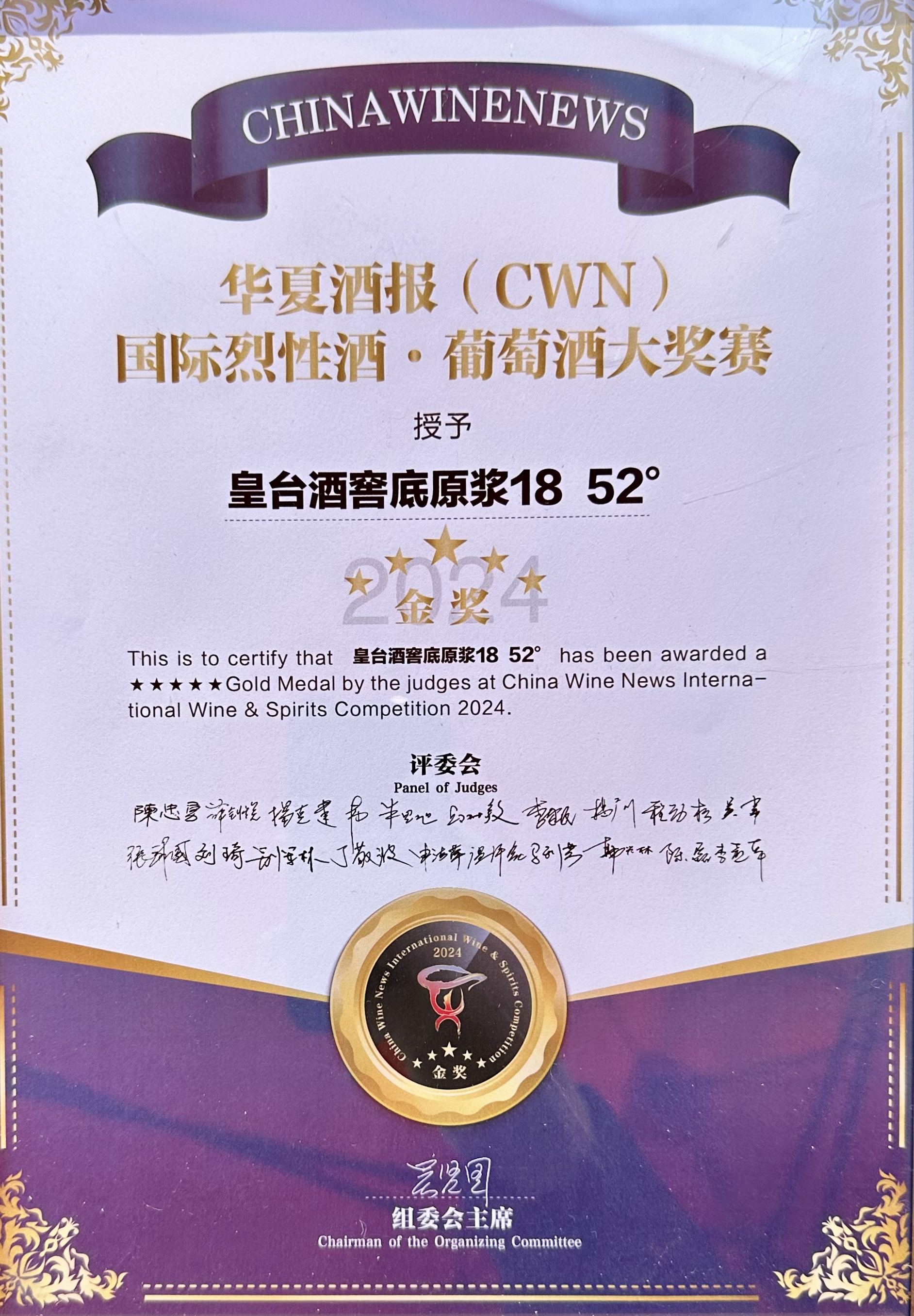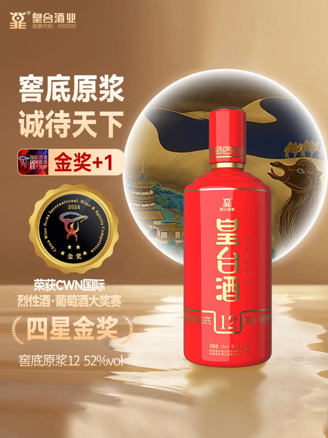 在第二屆CWN國際烈性酒·葡萄酒大獎賽頒獎盛典上,52度涼州好酒在烈性酒A類(價格在< 200元組)榮捧金獎;52度皇臺窖底原漿12和42度窖底原漿18兩款產品在B類(價格在<200-499元組)中榮捧金獎;52度皇臺窖底原漿18在C類(價格在500—799元組)中榮捧金獎。