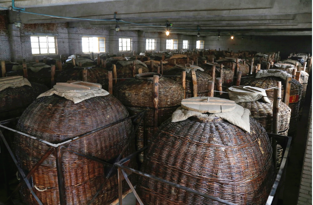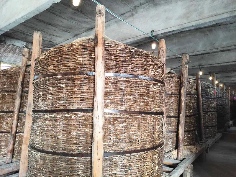 酒海子用藤條編制而成,外形粗糲,古意拙樸?;逝_酒業(yè)上百個酒海子,經年累月,置于酒庫一隅,拋棄喧囂,遠離浮華,在歲月的時光里溫養(yǎng)醇厚飽滿的酒液。