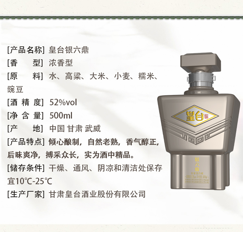 品名:皇臺酒銀六鼎52度濃香型純糧食陳釀白酒送禮宴請禮盒裝