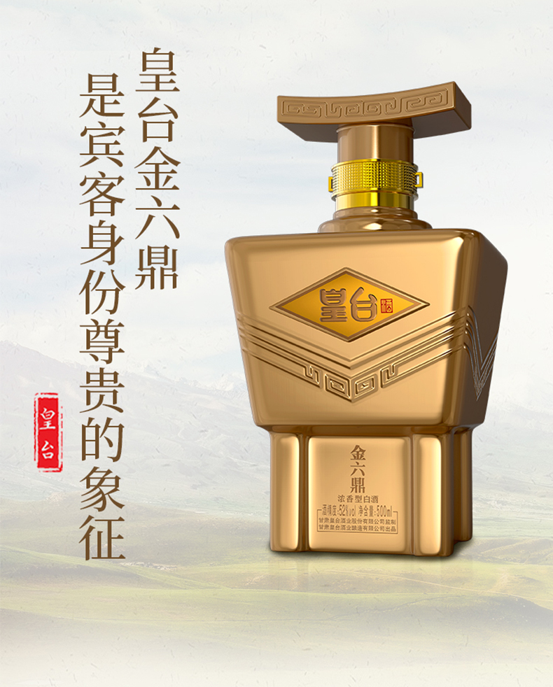 品名:皇臺酒52度金六鼎濃香型純糧食釀造白酒送禮500ml瓶禮盒裝