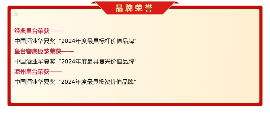 這一系列金獎和品牌榮譽(yù)的獲得,證明了皇臺酒在不同價位產(chǎn)品的優(yōu)秀品質(zhì),彰顯了皇臺酒的品牌影響力,以及在市場中的強(qiáng)勁競爭力。這些榮譽(yù)不僅是對皇臺酒業(yè)產(chǎn)品品質(zhì)的認(rèn)可,更是對公司多年來堅(jiān)持傳統(tǒng)釀造工藝創(chuàng)新發(fā)展的肯定。皇臺酒業(yè)將以此為契機(jī),繼續(xù)秉承匠心精神,為消費(fèi)者帶來更多優(yōu)質(zhì)酒品。