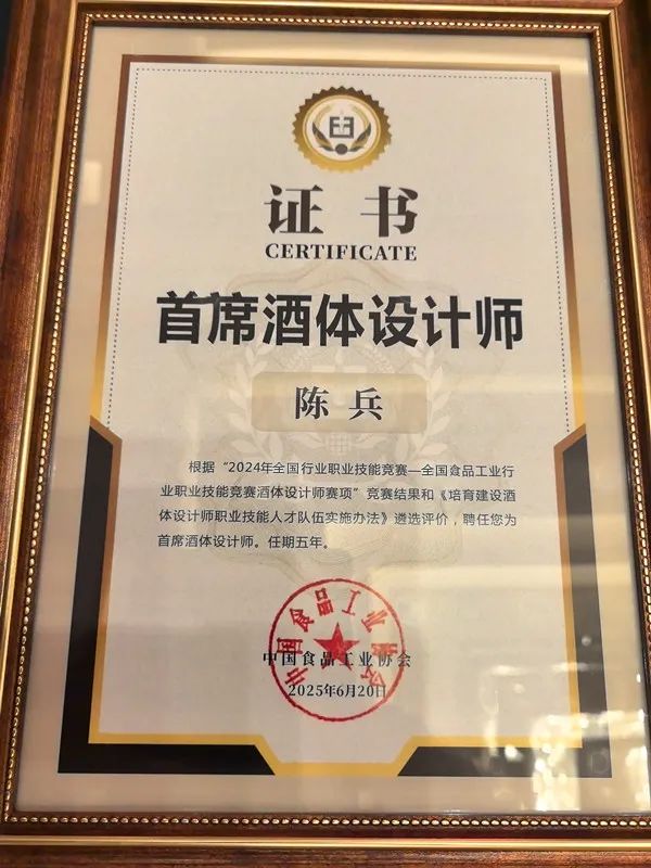 7月2日,在江西南昌舉行的中國食品工業(yè)協(xié)會"首席酒體設(shè)計(jì)師頒證大會暨第十屆白酒評委第二次年會"上,皇臺酒業(yè)副總經(jīng)理兼總工程師、國家白酒評委陳兵,憑借數(shù)十年如一的專業(yè)堅(jiān)守與卓越技藝,榮膺"首席酒體設(shè)計(jì)師"稱號。這項(xiàng)國家級榮譽(yù)既是對陳兵專業(yè)造詣的高度肯定,更是對皇臺酒業(yè)科研實(shí)力、品質(zhì)管控及人才培養(yǎng)體系的有力印證。