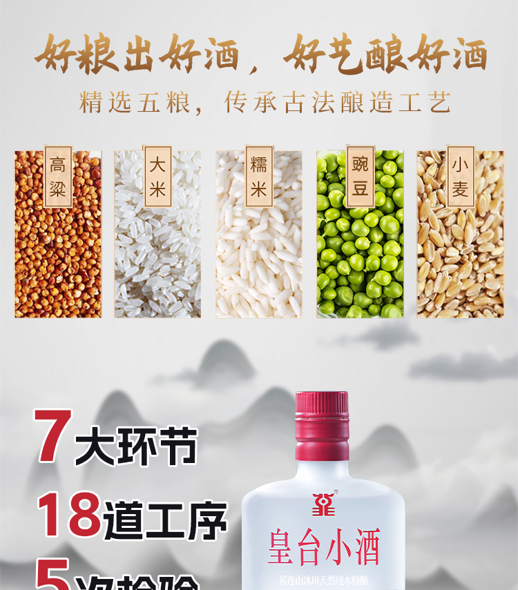 原料:水、高粱、大米、小麥、糯米、豌豆