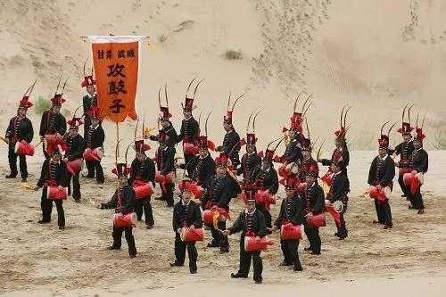 涼州攻鼓子的表演風(fēng)格渾厚而豪邁,給人以威武雄壯、粗獷豪放的美感,具有強(qiáng)烈的西部特色。