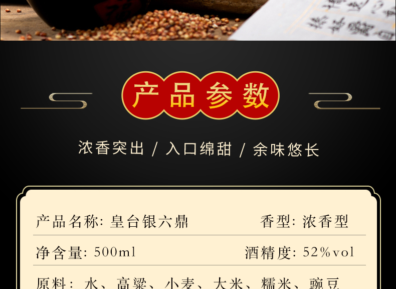 品名:皇臺酒42度銀六鼎濃香型純糧食高度白酒送禮自飲婚慶禮盒裝