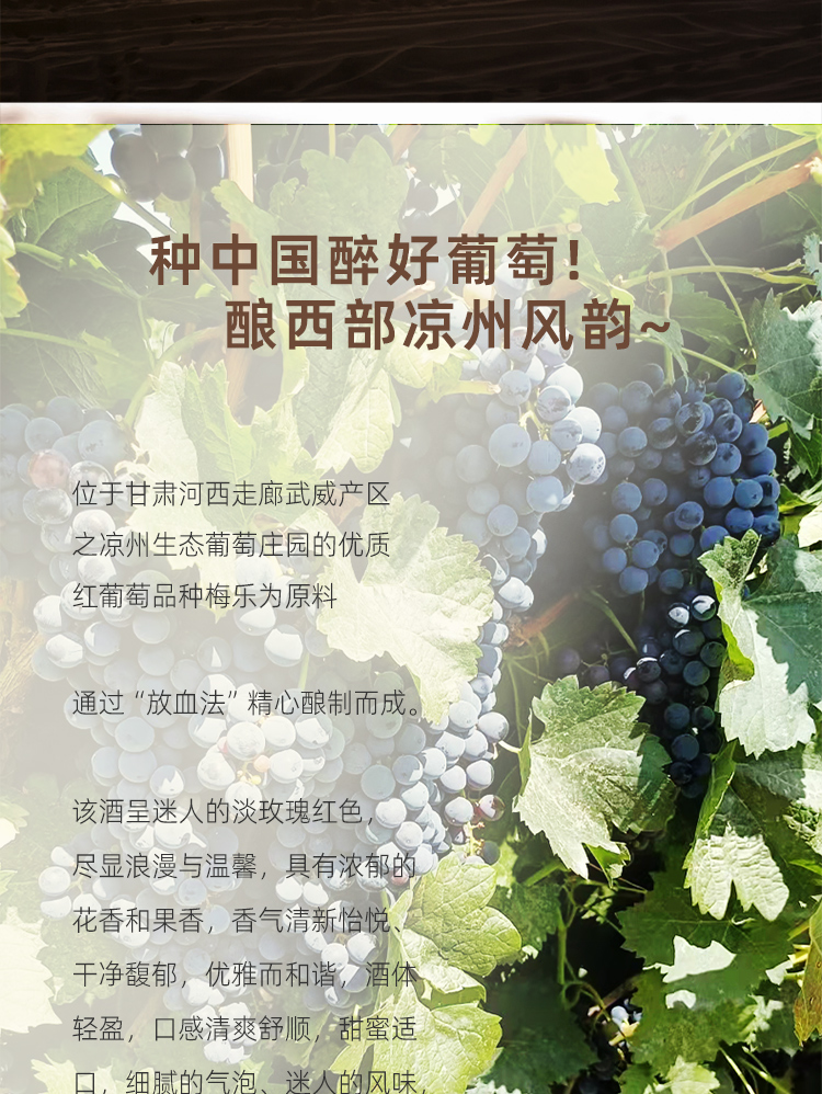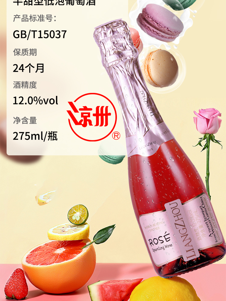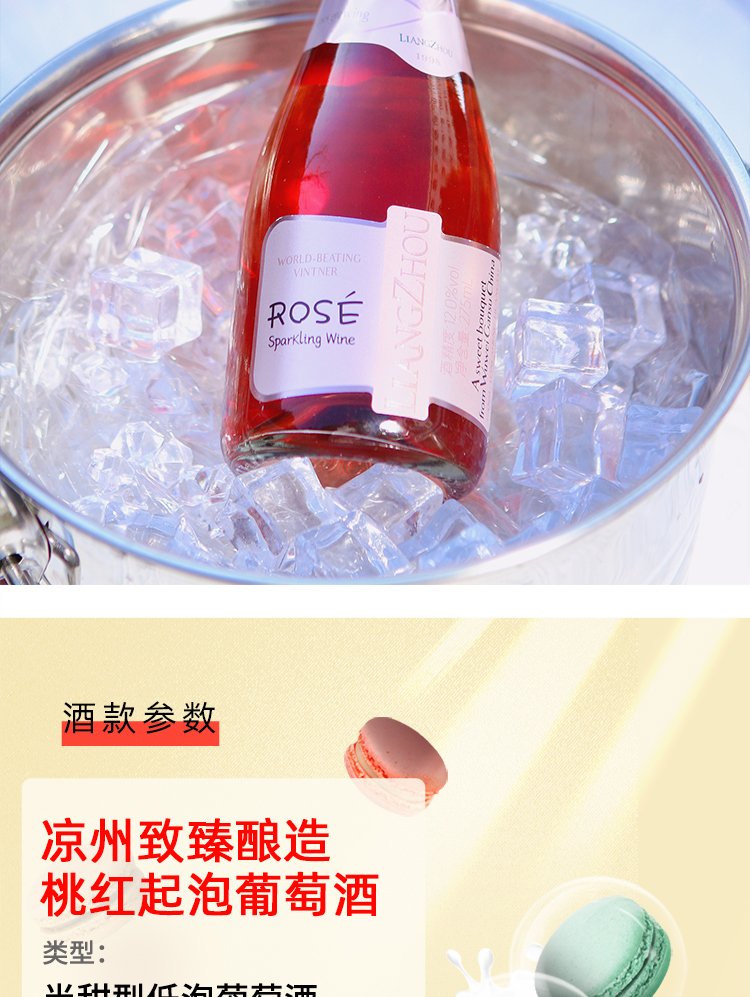 品名:甘肅涼州致臻釀造桃紅起泡葡萄酒